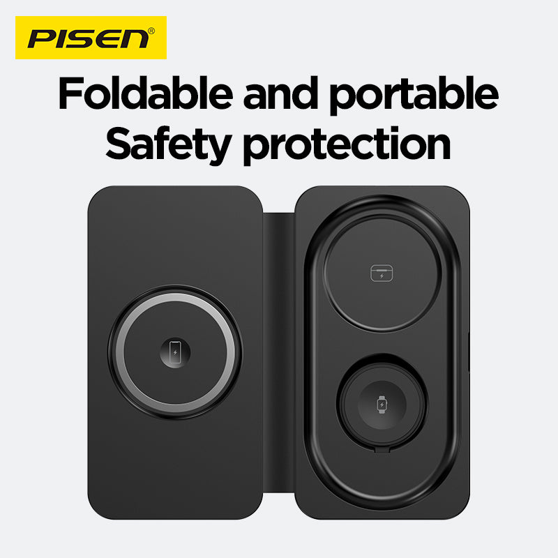 PISEN 3-in-1 travel multifunctional magnetic wireless charger F6