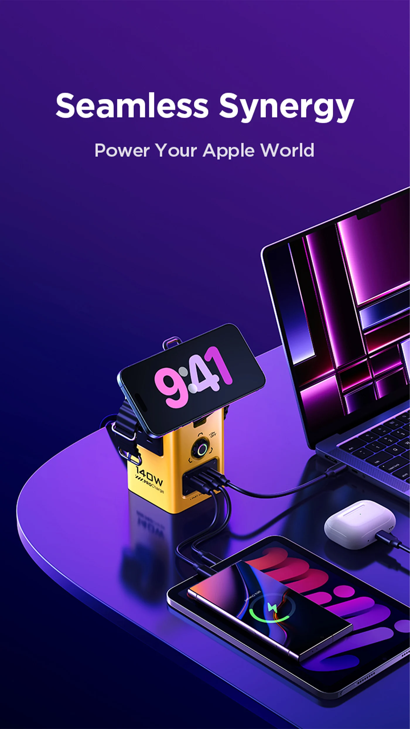 - Wireless Charging Station: Experience the convenience of wireless charging with PISEN 140W all in one charging station, utilizing Qi2 15W Mag-Safe wireless charger and the wireless watch charger to free you from tangled cables. Magnetic wireless charger plate can be freely folded up to 65°. Conveniently switch between landscape or portrait mode for a comfortable view.