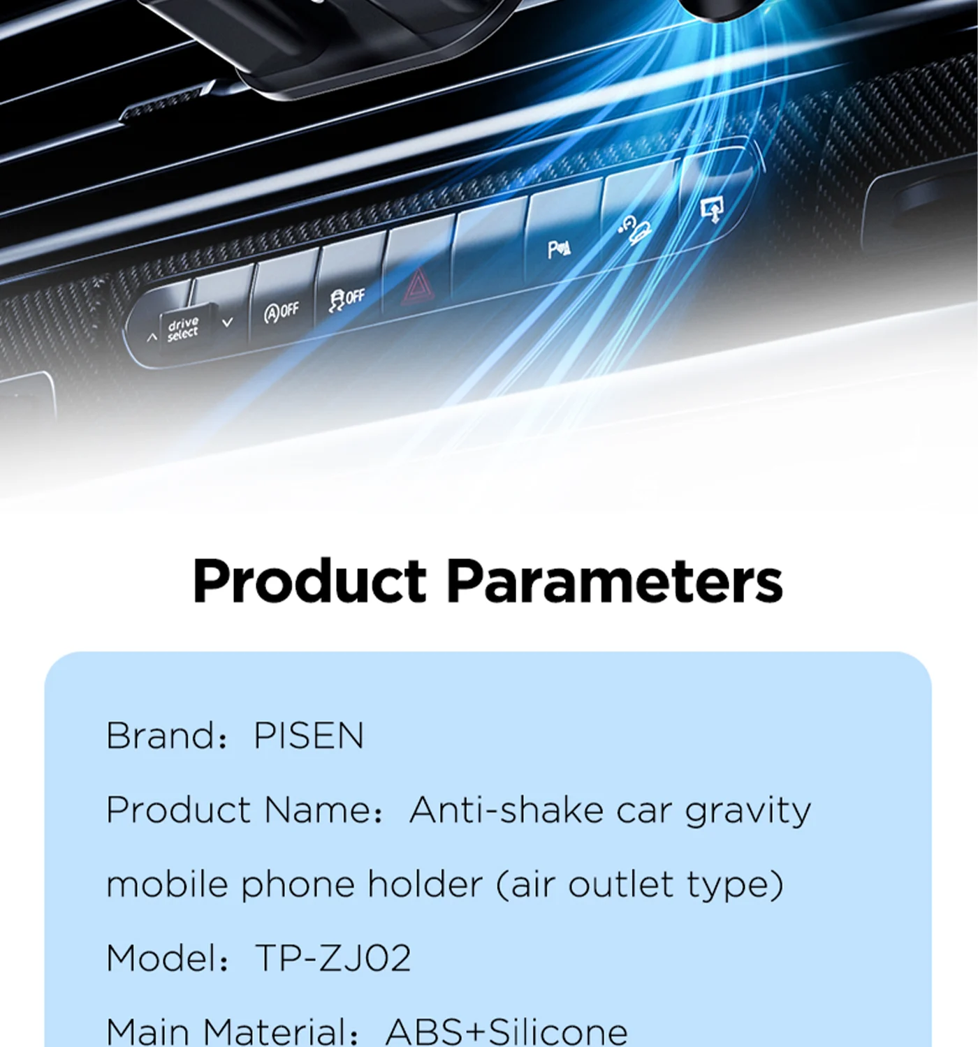PISEN Anti Shake Car Gravity Phone Holder TP-ZJ02