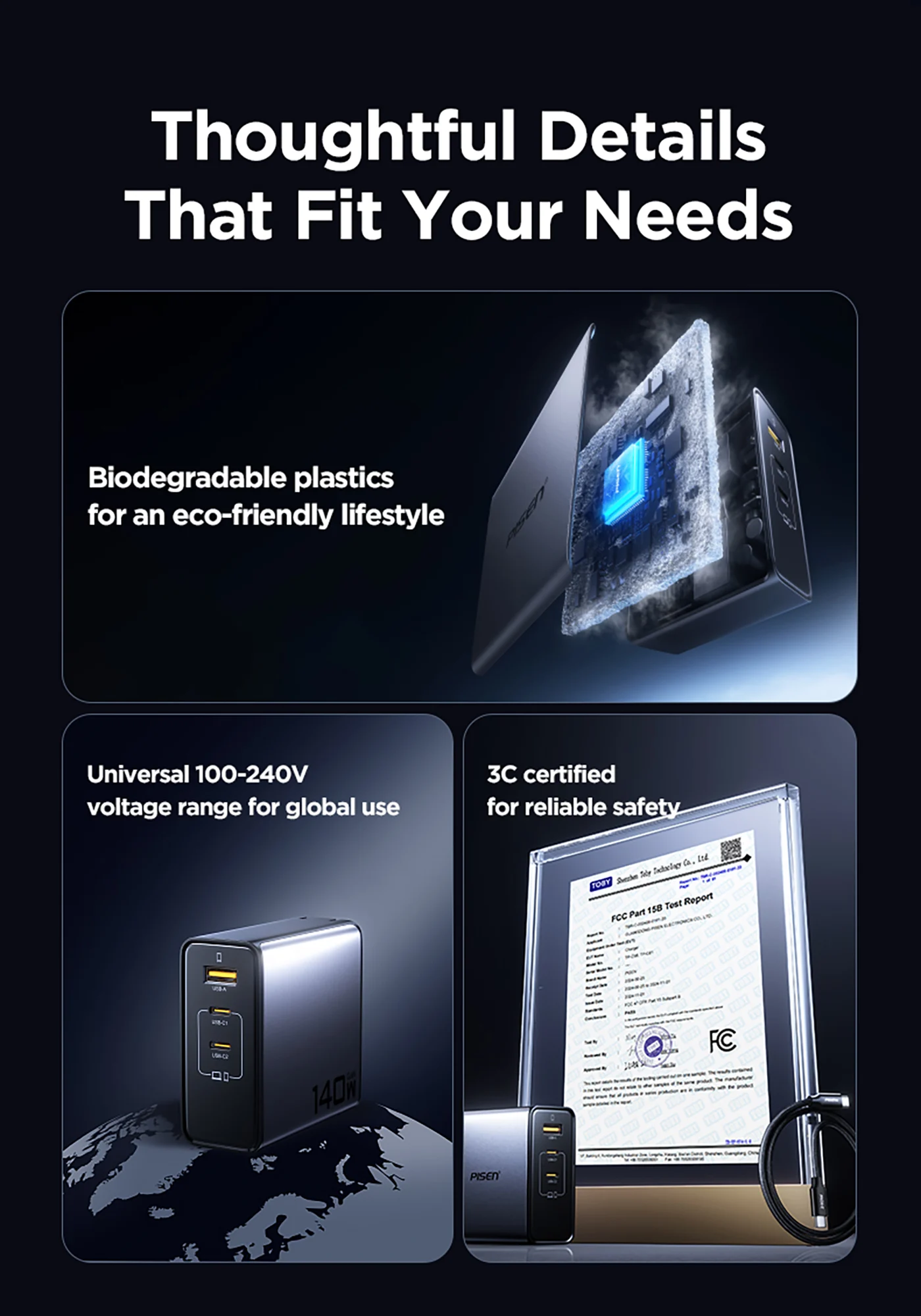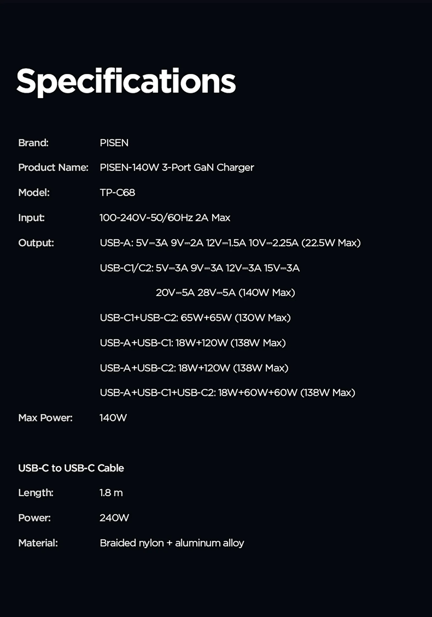 5V-3A/ 9V-3A/ 12V-3A/ 15V-3A/ 20V-5A/28V-5A (140W Max)