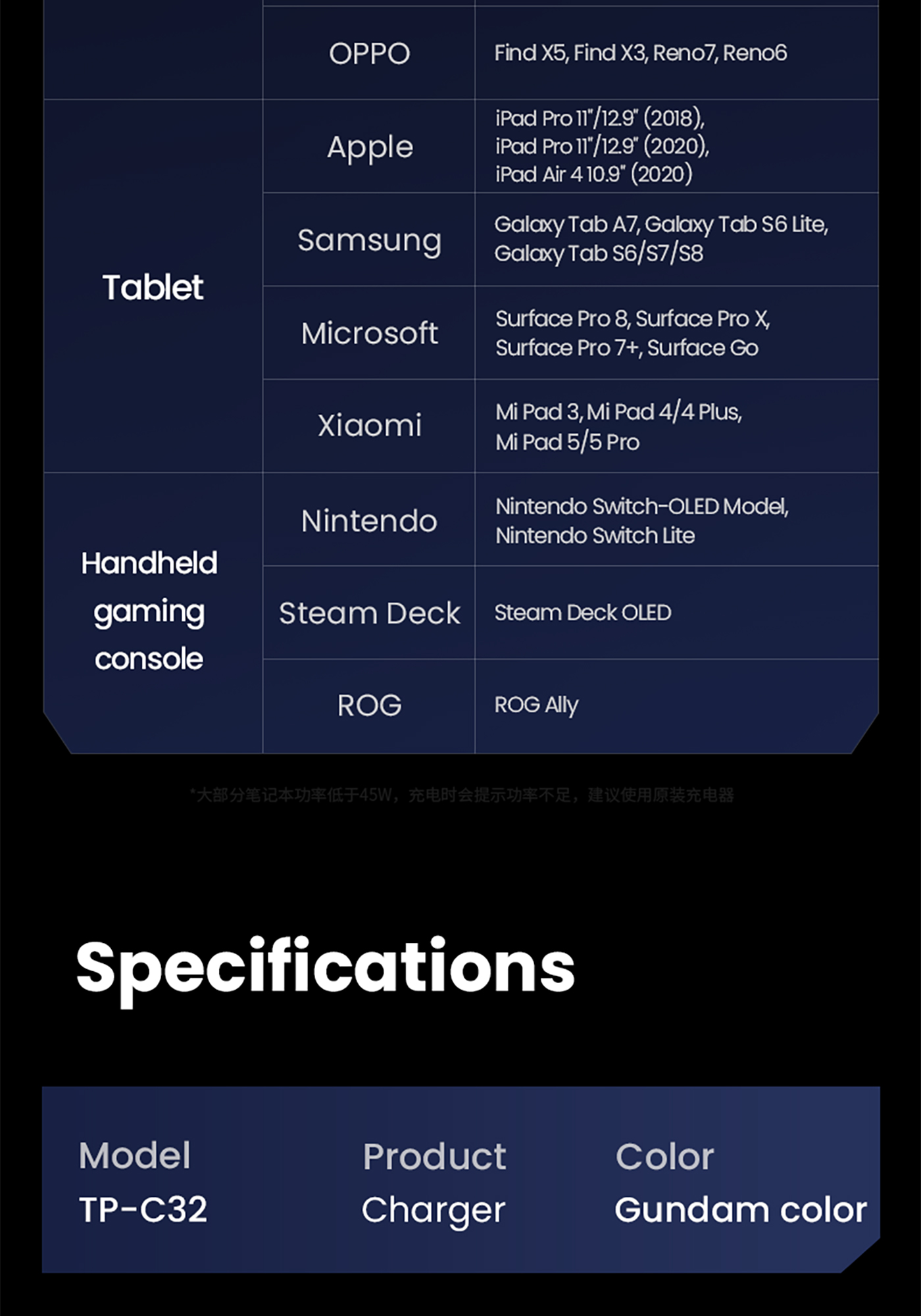 GaN III tech for low heat; USB‑C single‑port max 30W—ideal for laptops, Steam Deck, phones.