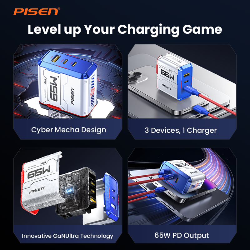 PISEN Gamer Lite 65W 3-Port GaN Fast Charger TP-C34