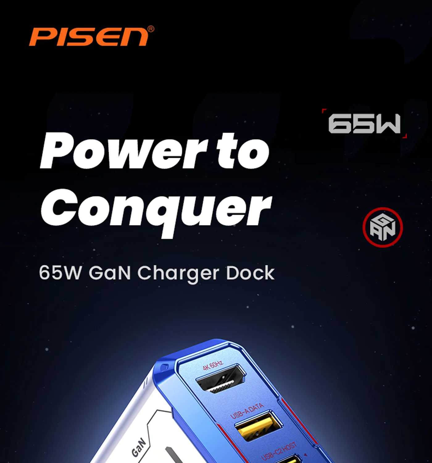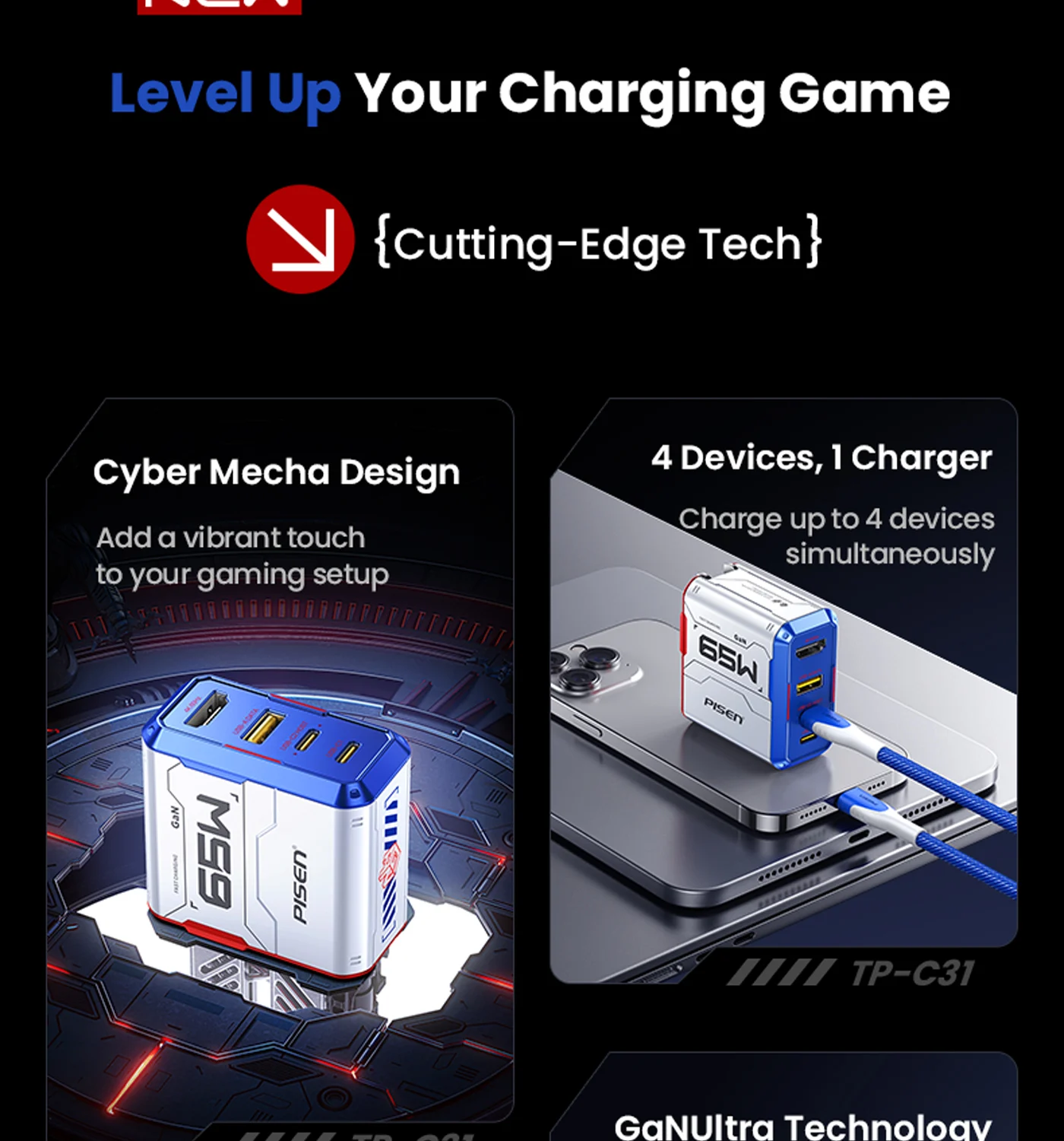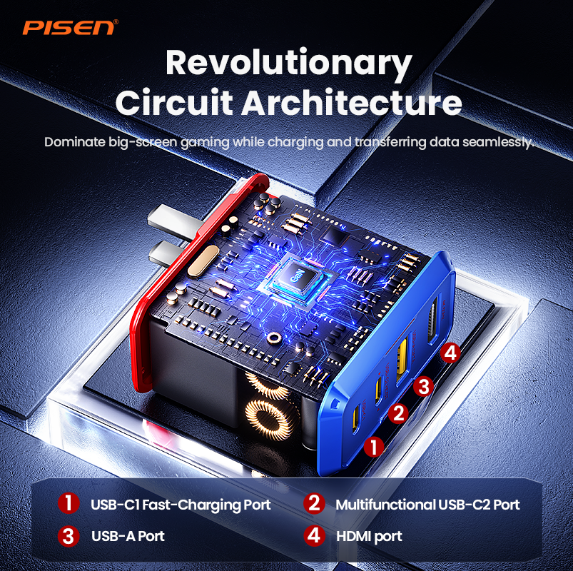 PISEN Gamer Utility 65W 4-Port GaNHub Fast Charger TP-C31