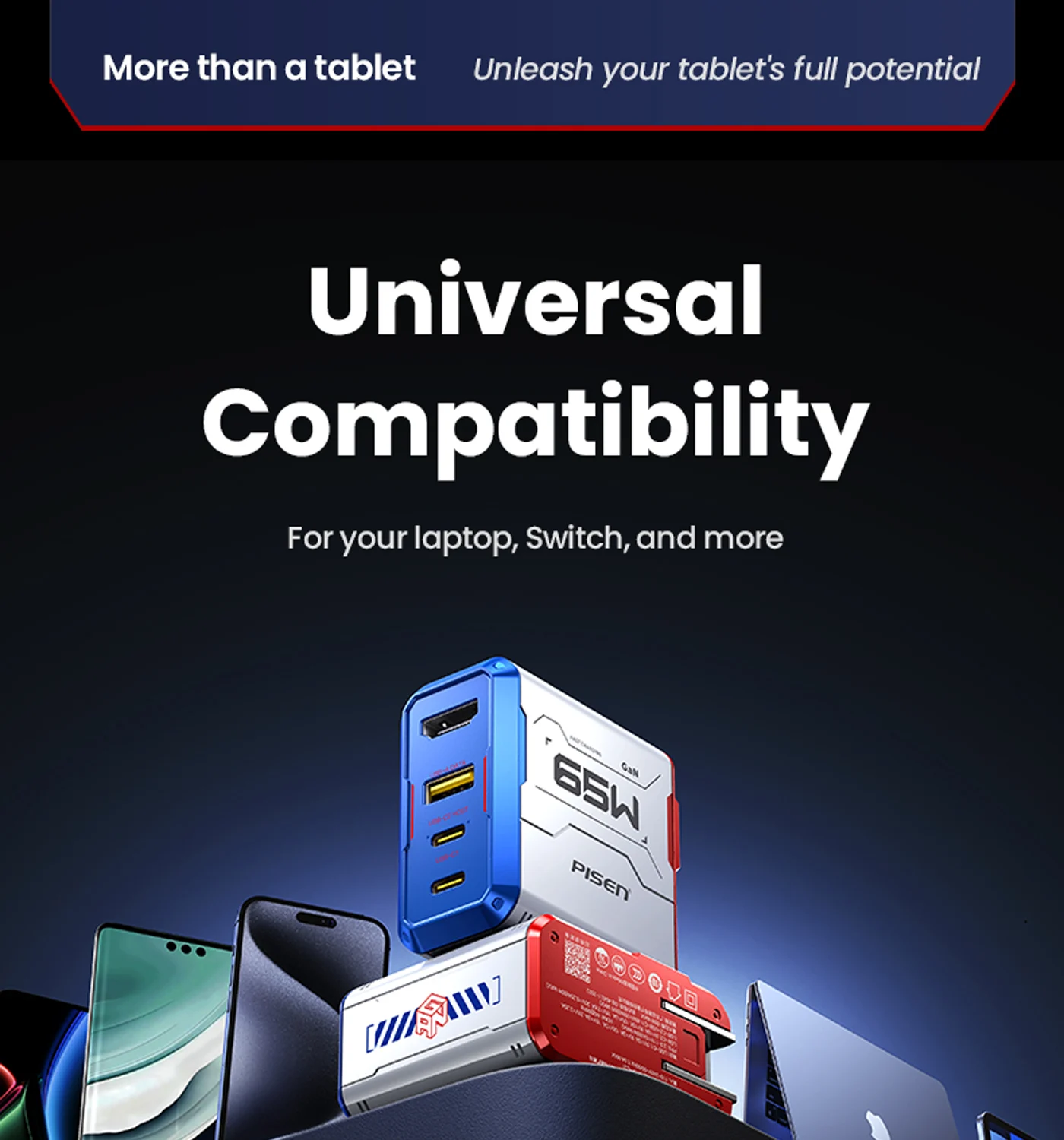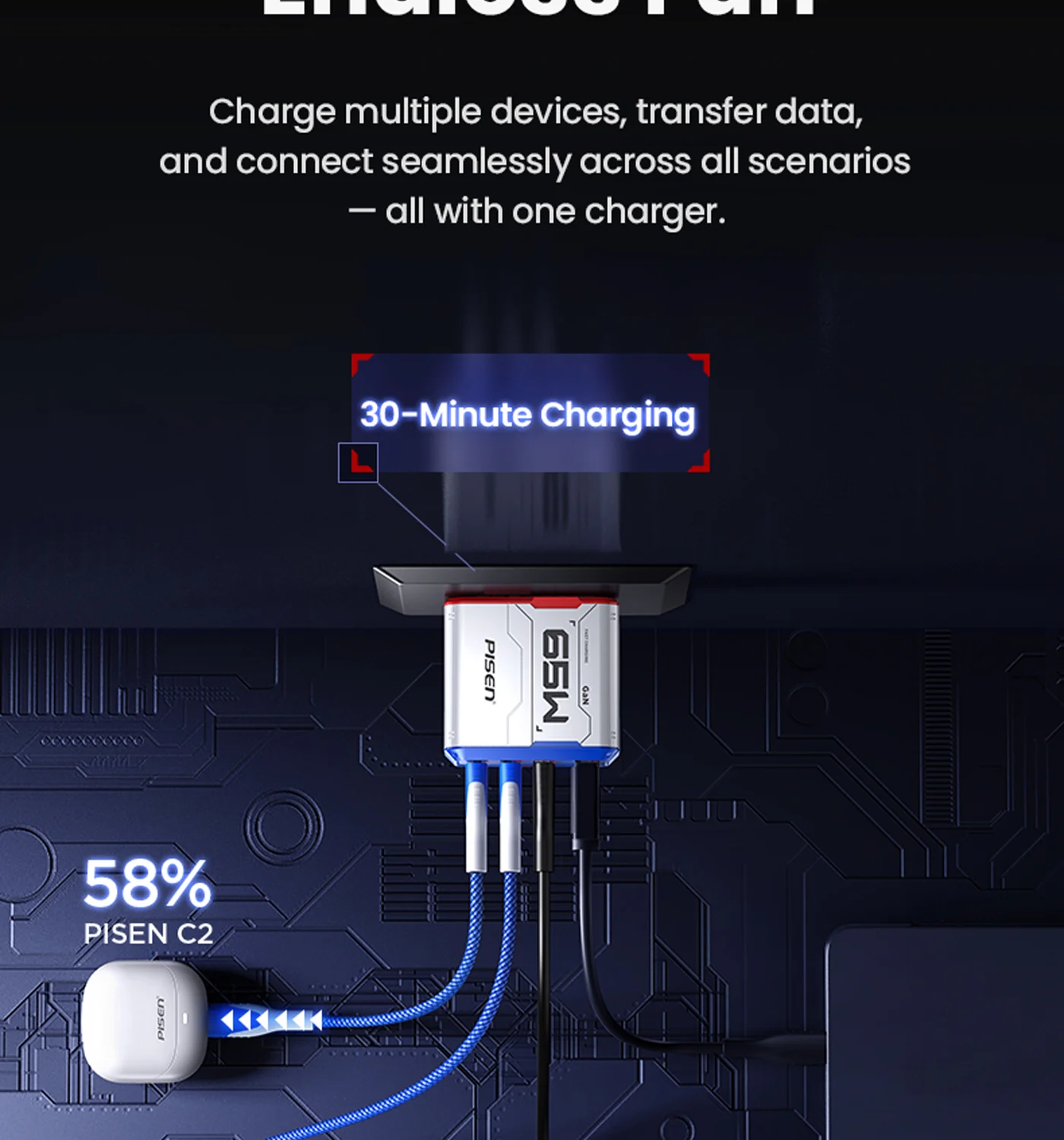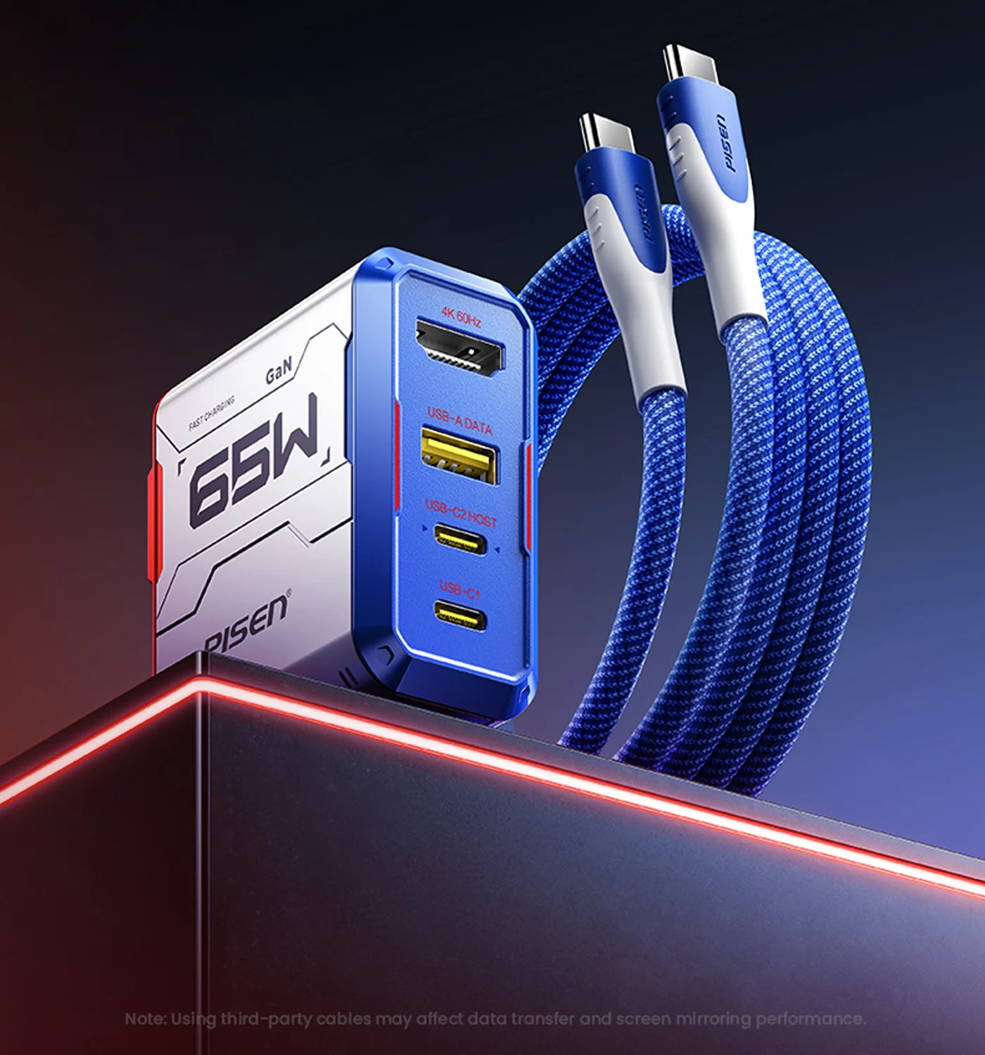PISEN Gamer Utility 65W 4-Port GaNHub Fast Charger TP-C31