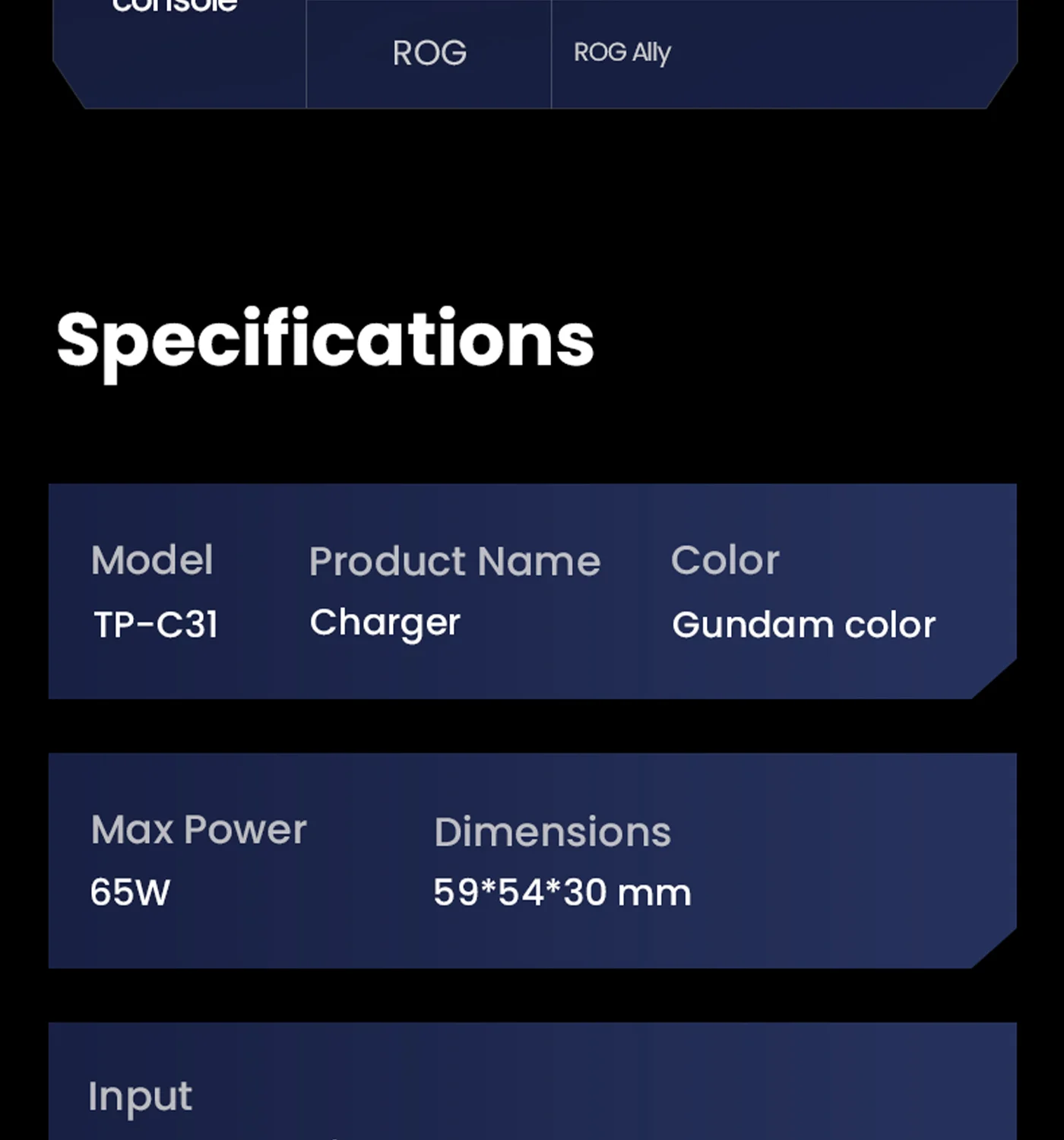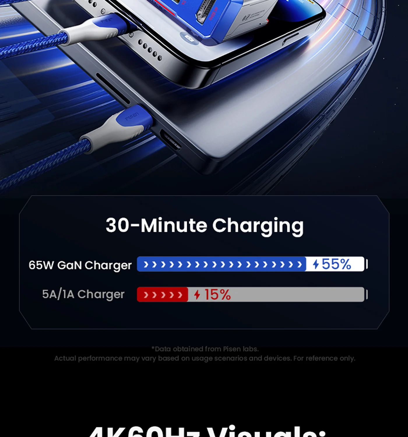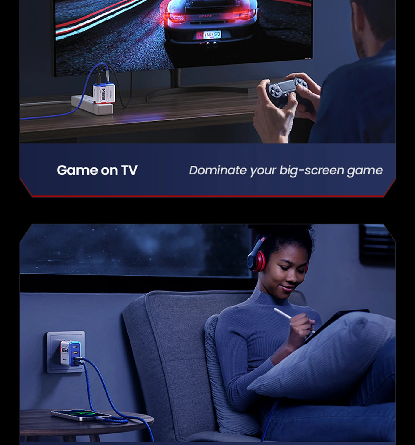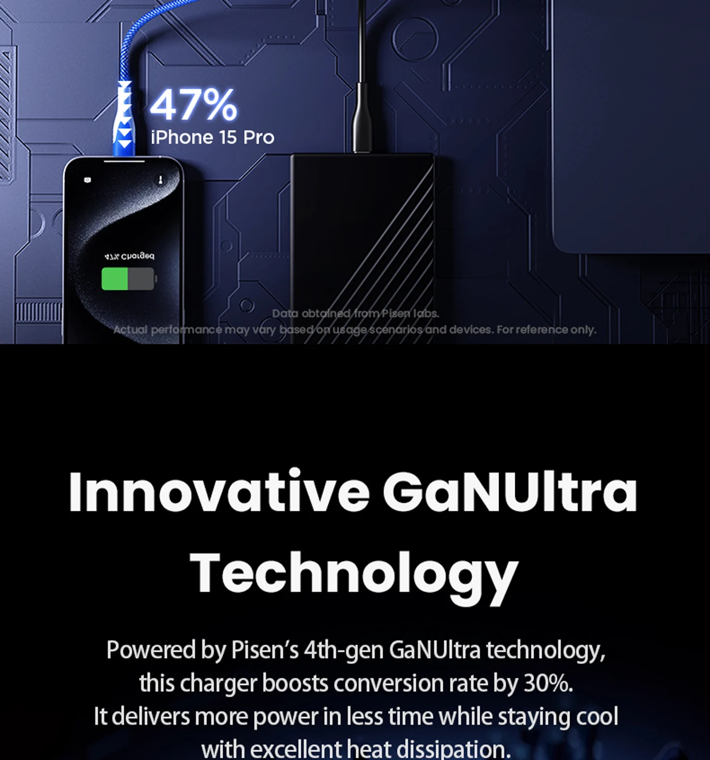 Low-heat fast charging, single USB-C port max 65W for laptops/consoles.
