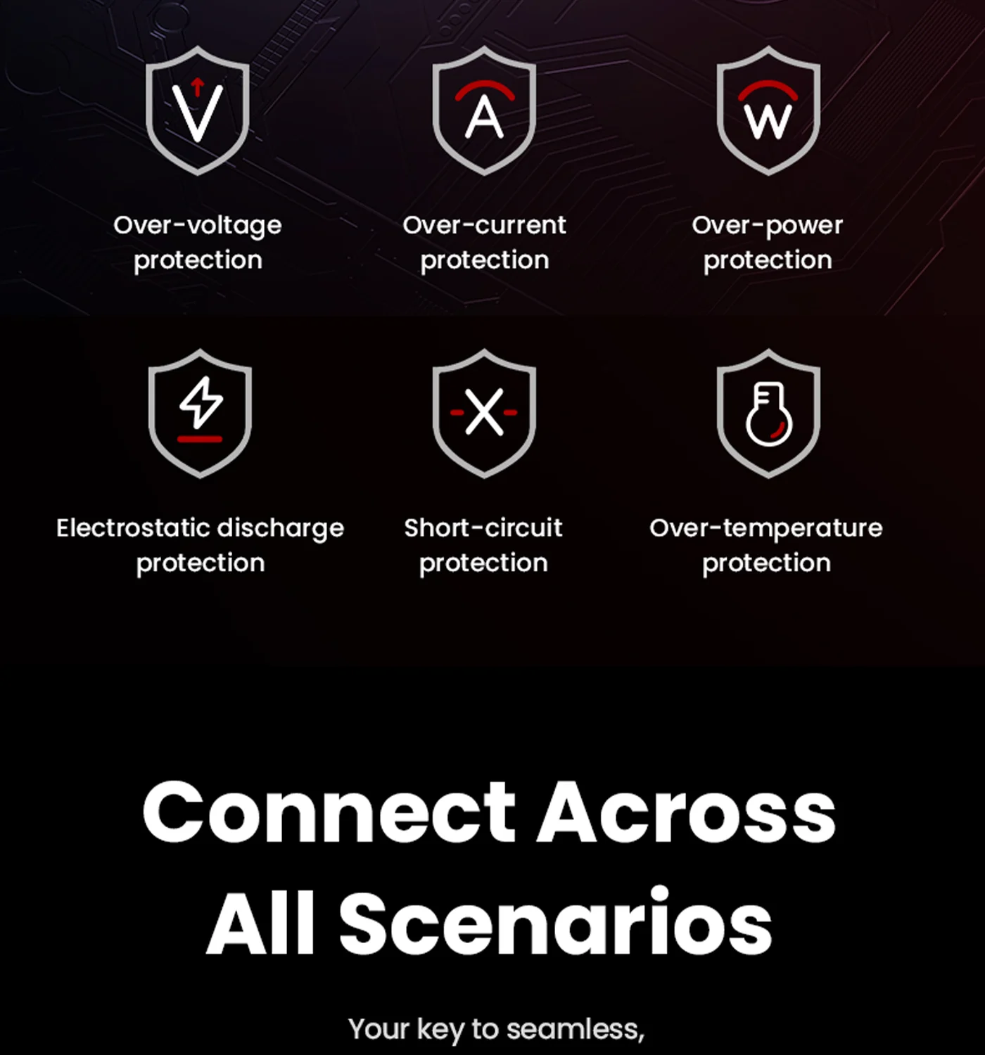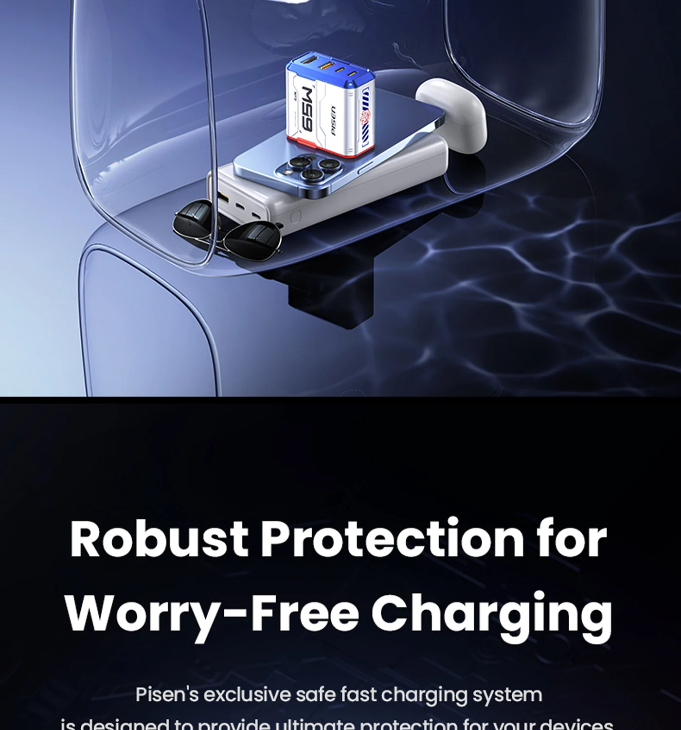 Guards against overcharge, overheat and short circuit for device security.