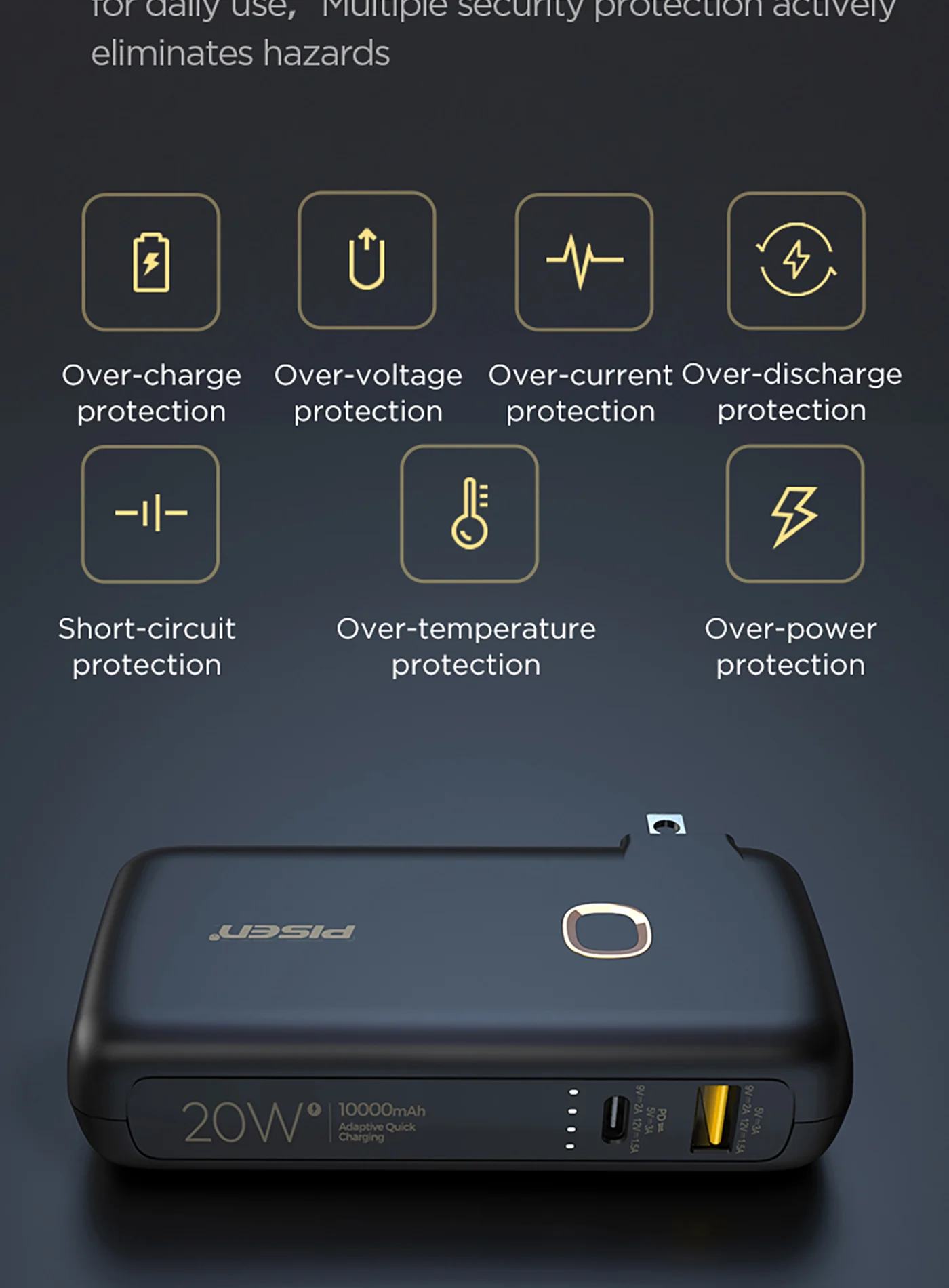 The PISEN Power Bank provides efficient and versatile charging solutions with a sleek design tailored for daily use. Its features ensure a seamless and secure charging experience.