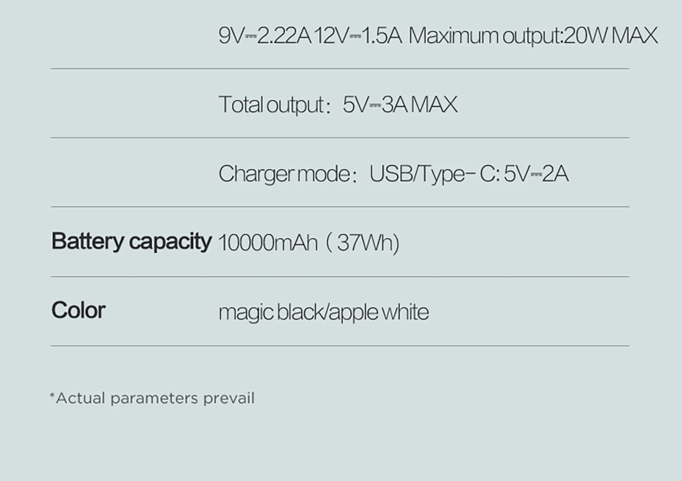 10000mAh (typical) 37Wh; 9200mAh (rated) 34.04Wh