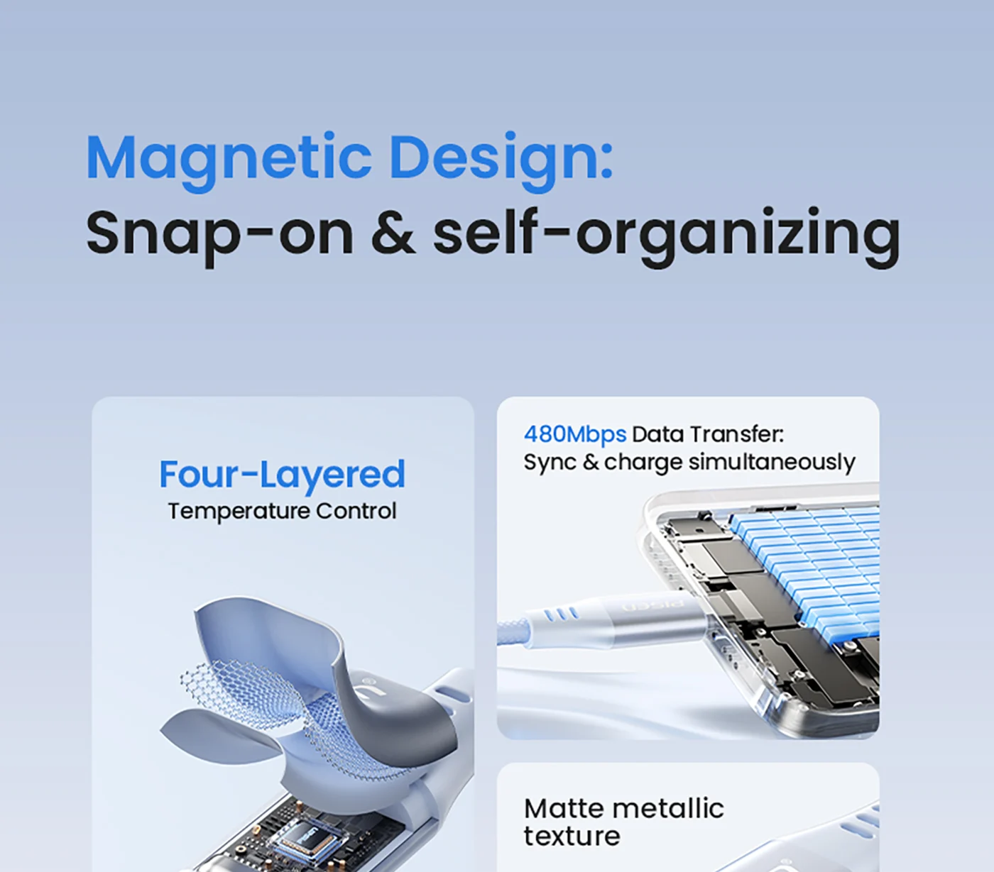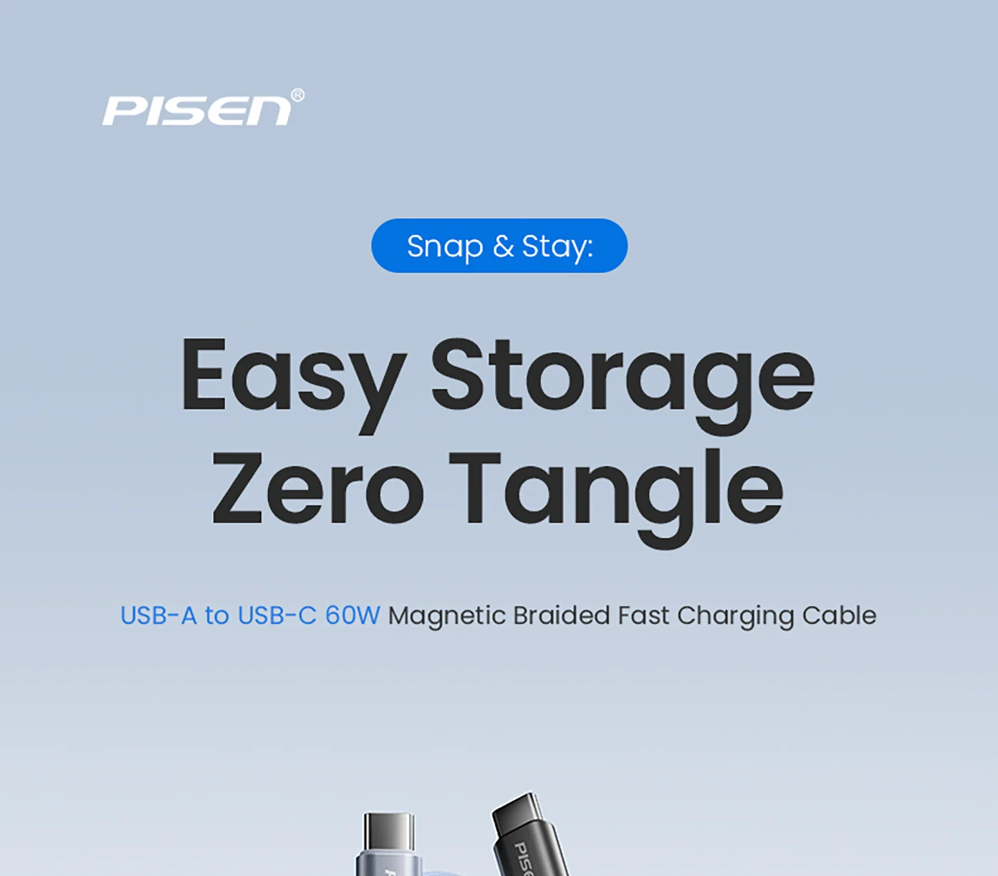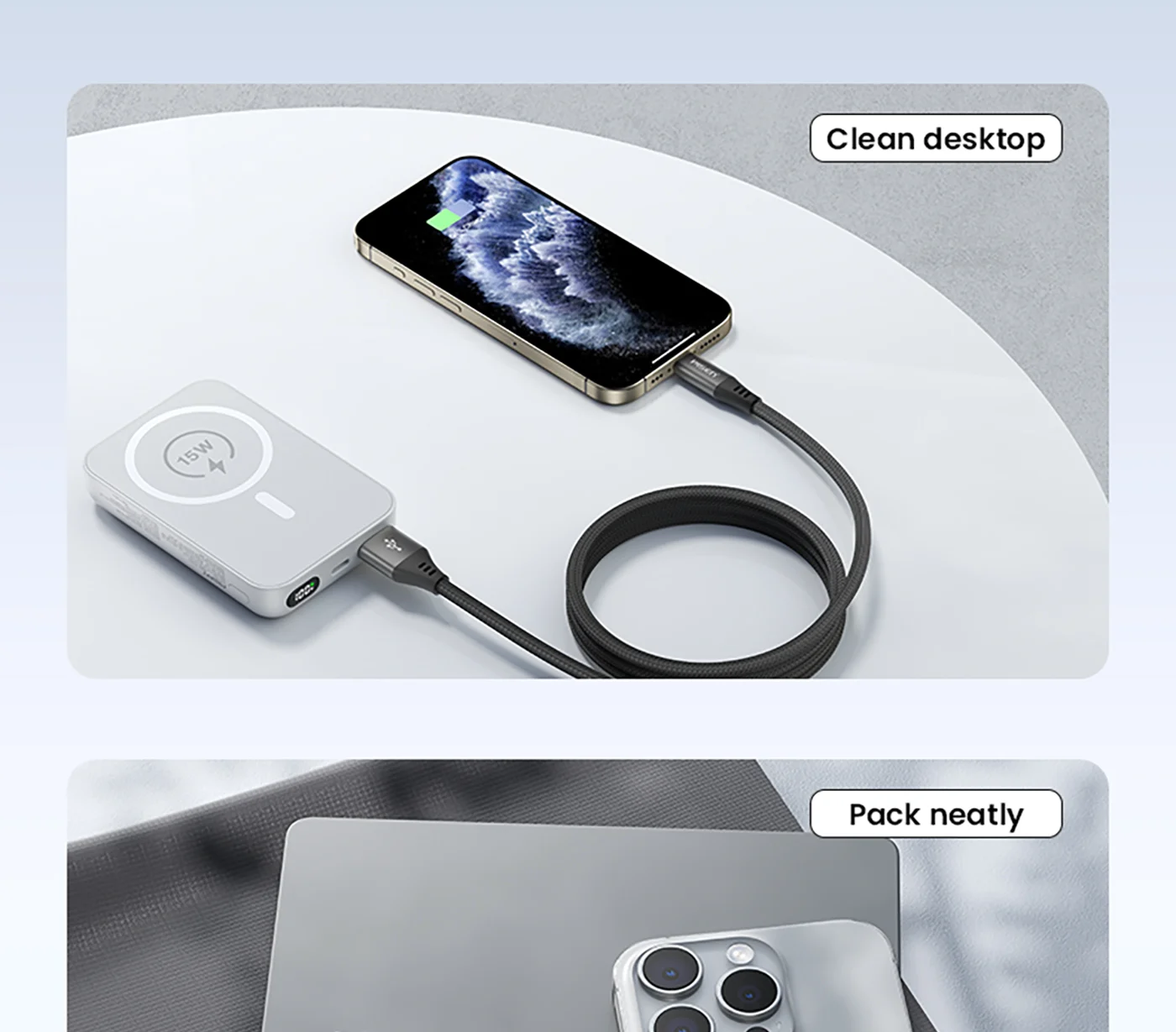 Magnetic loop for easy storage and anti-tangle, ideal for home/office/travel.