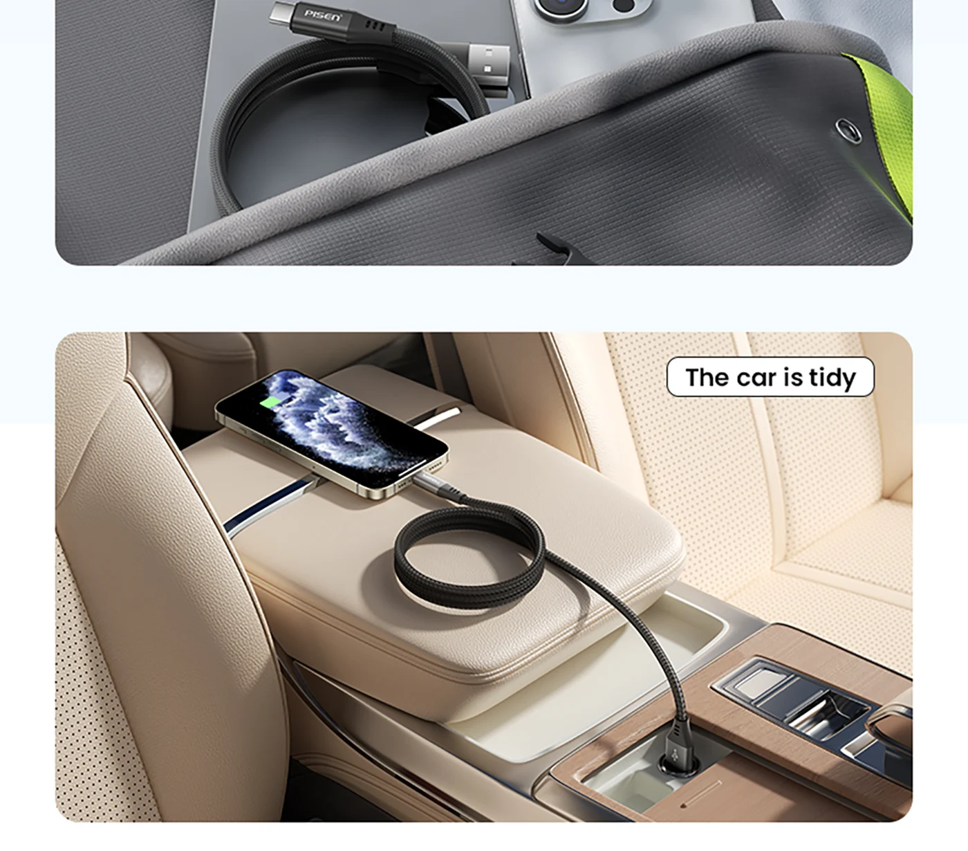 Universal connection for USB-A chargers and Type-C gadgets.
