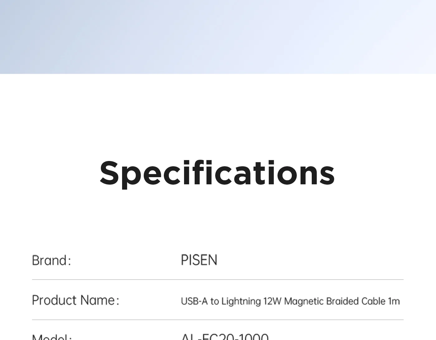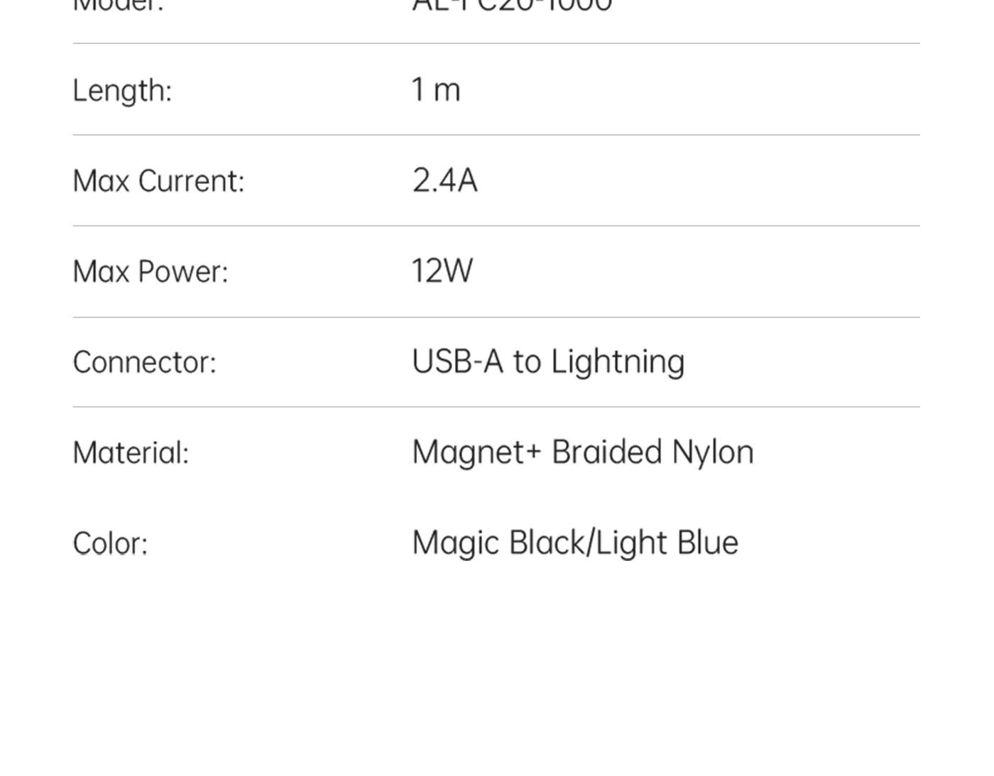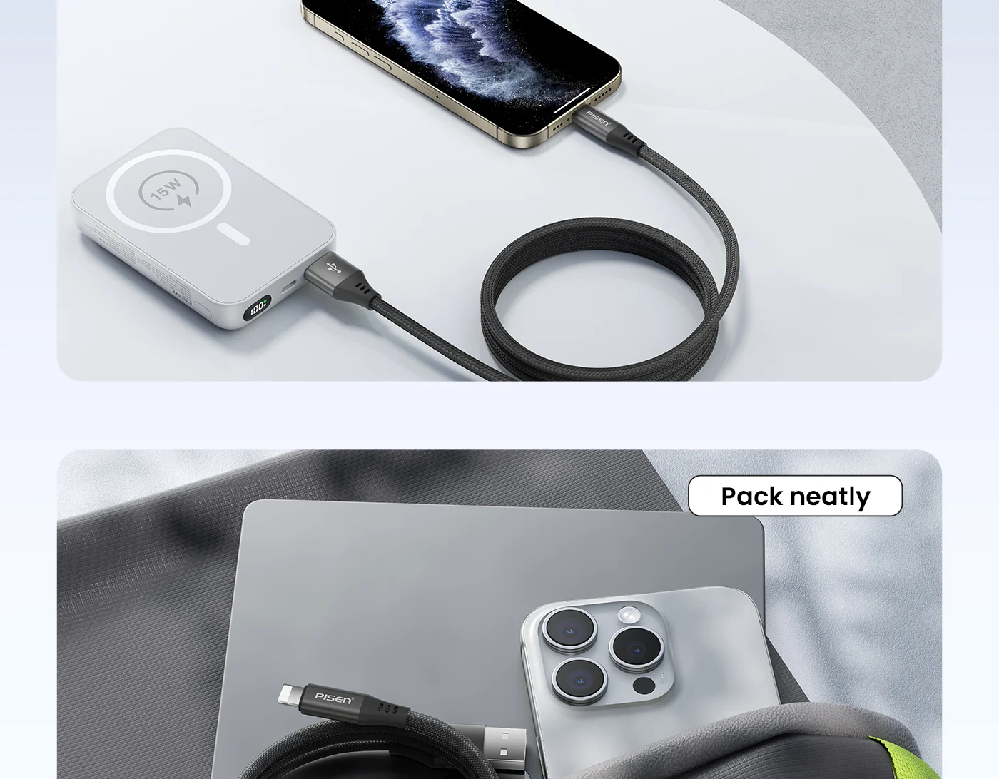 PISEN MagiPi Magloop USB-A to Lightning 12W Fast Charging Cable AL-FC20-1000