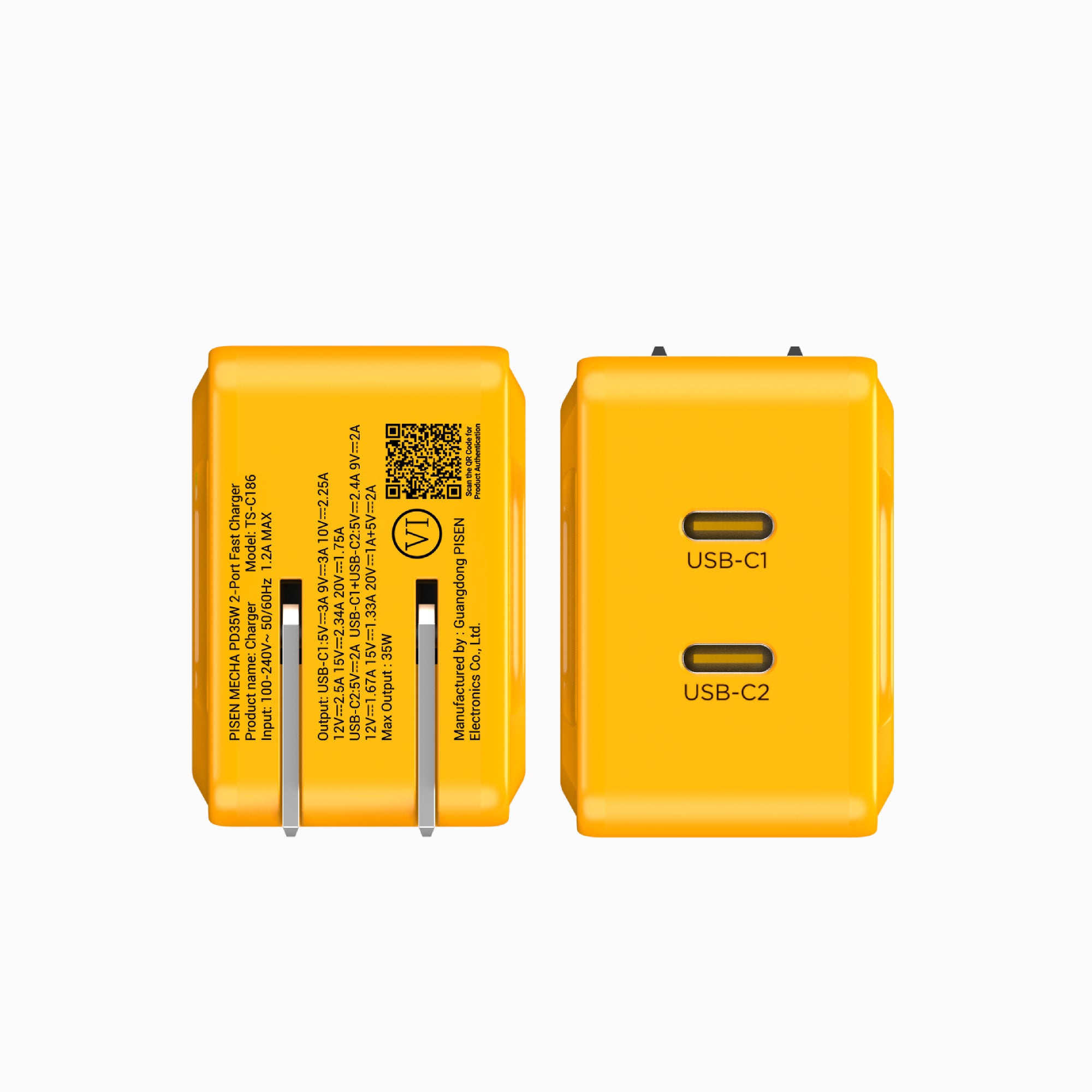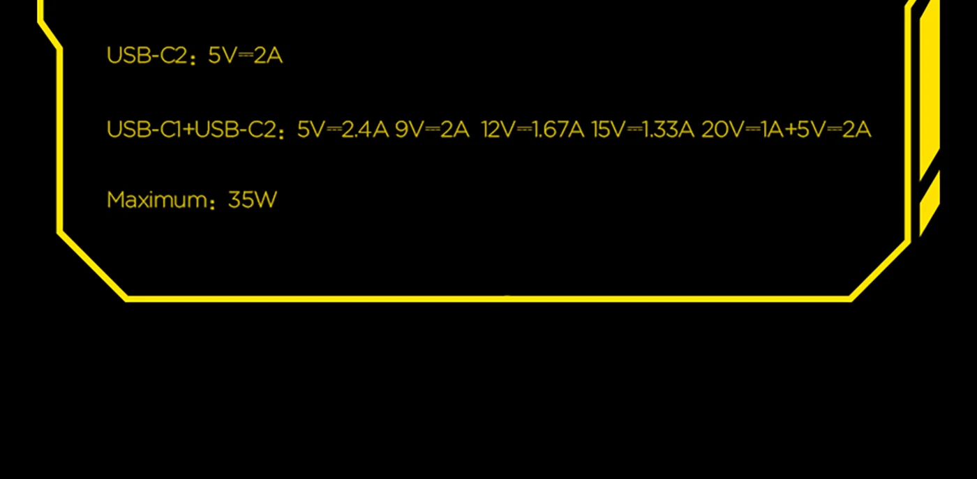 C1 port delivers max 35W for phones/laptops; C2 10W for earbuds/watch.