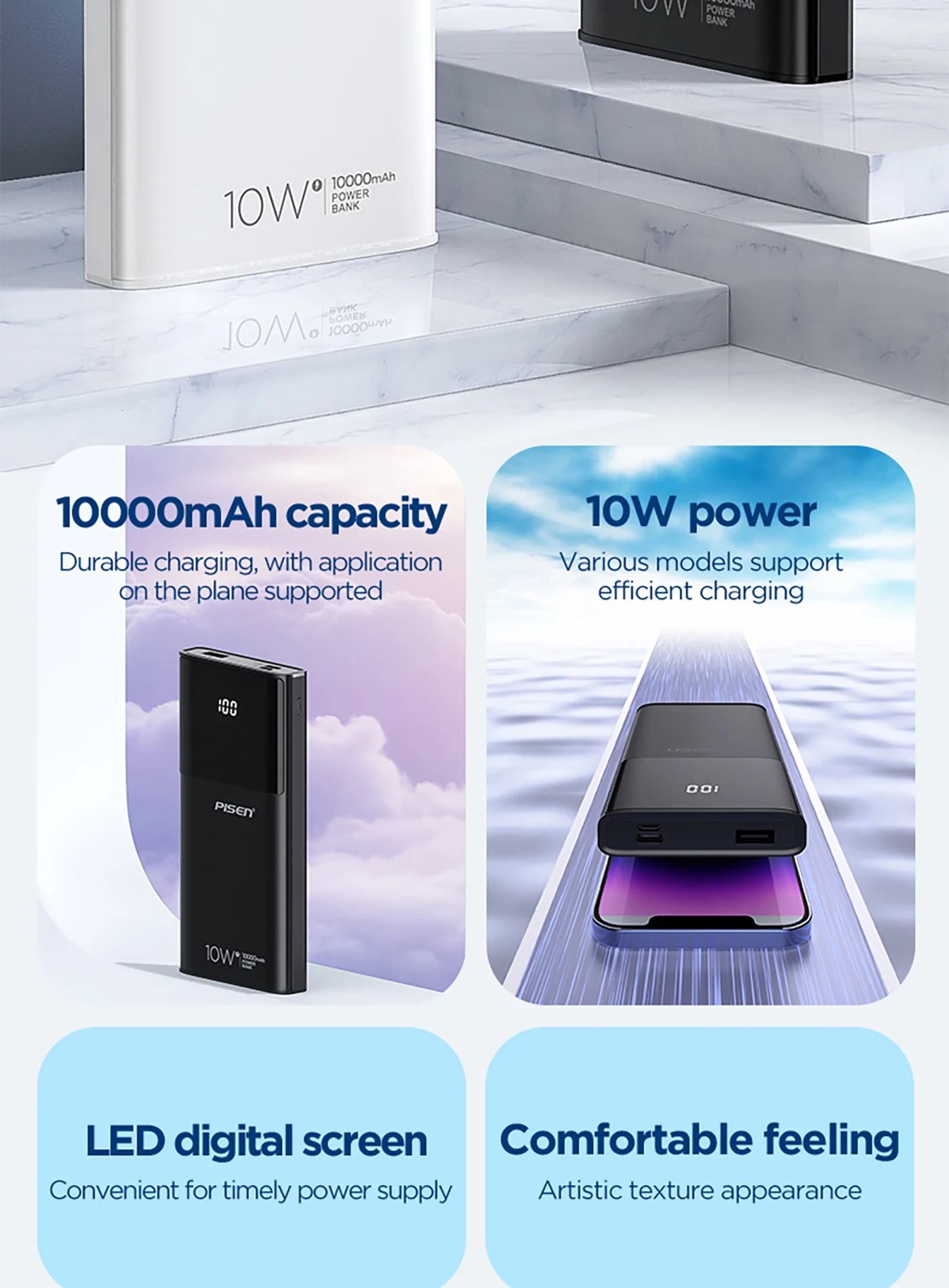 PISEN Mr White Digital 10000mAh Power Bank TP-D33