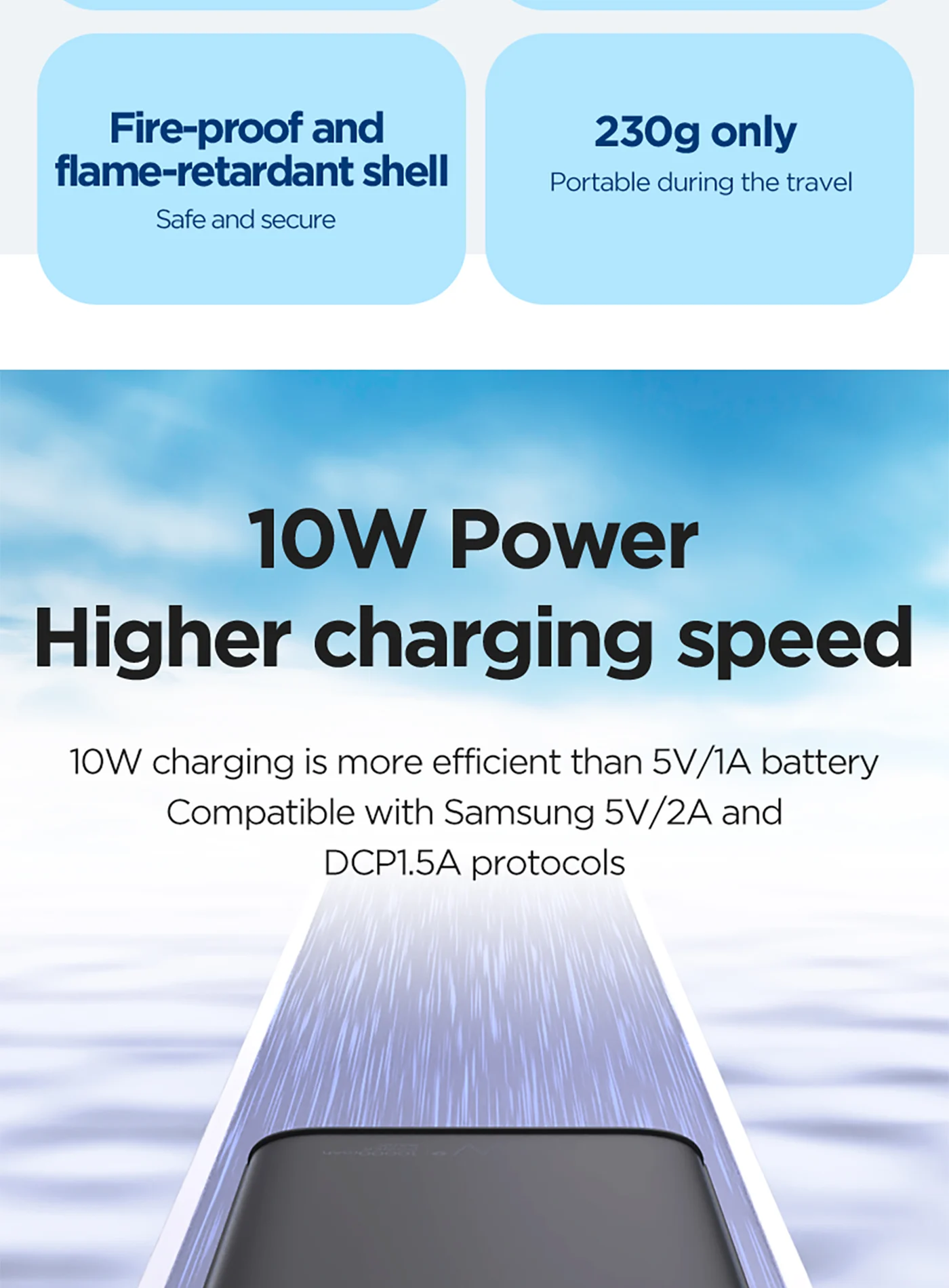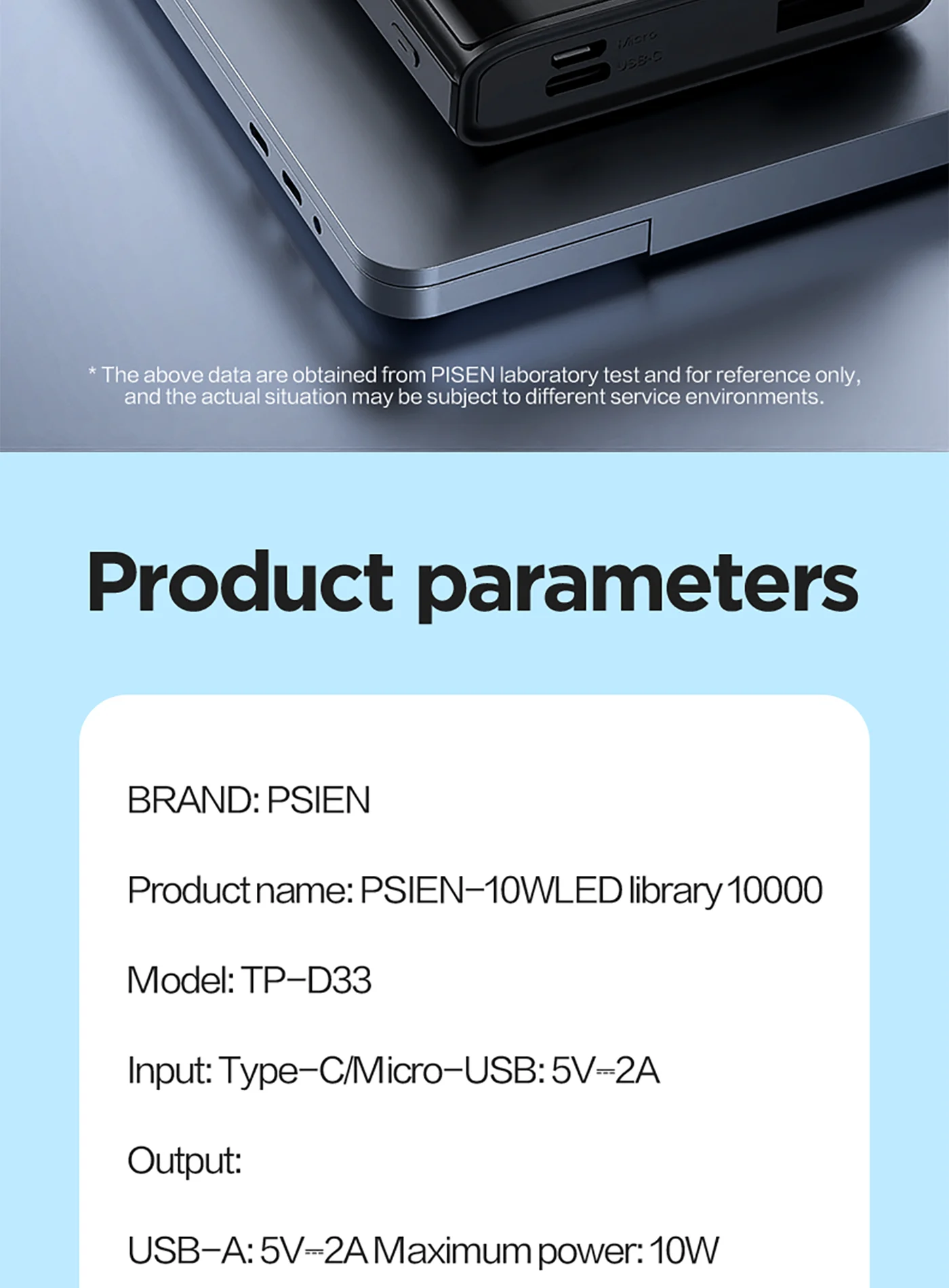 USB-A: 5V-2A Maximum power: 10W