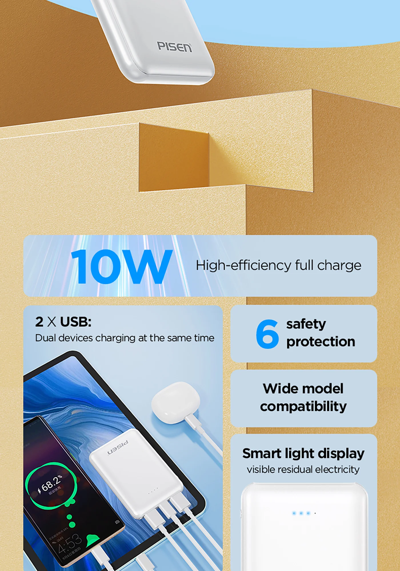 PISEN Mr White Mini 5000mAh Power Bank TP-D34