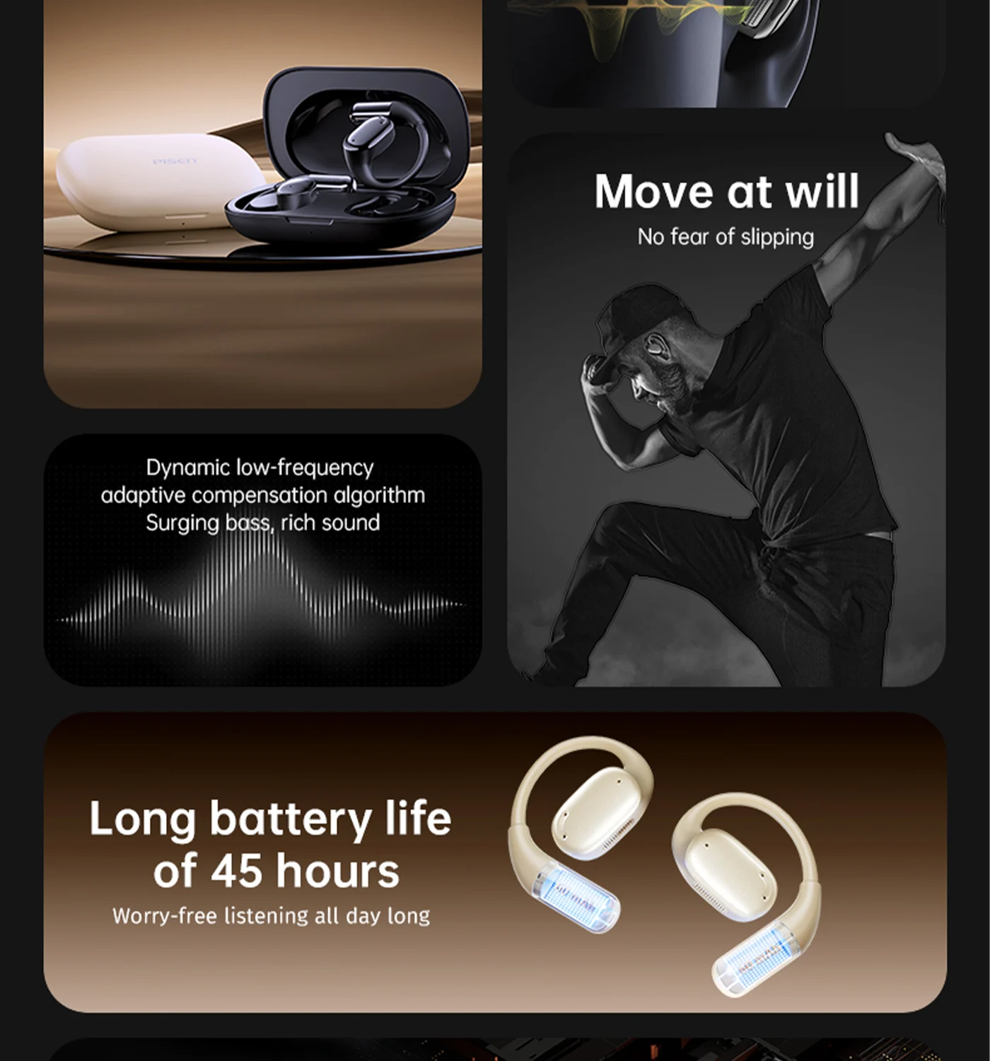 8h single use + charging case, meets daily and travel needs.