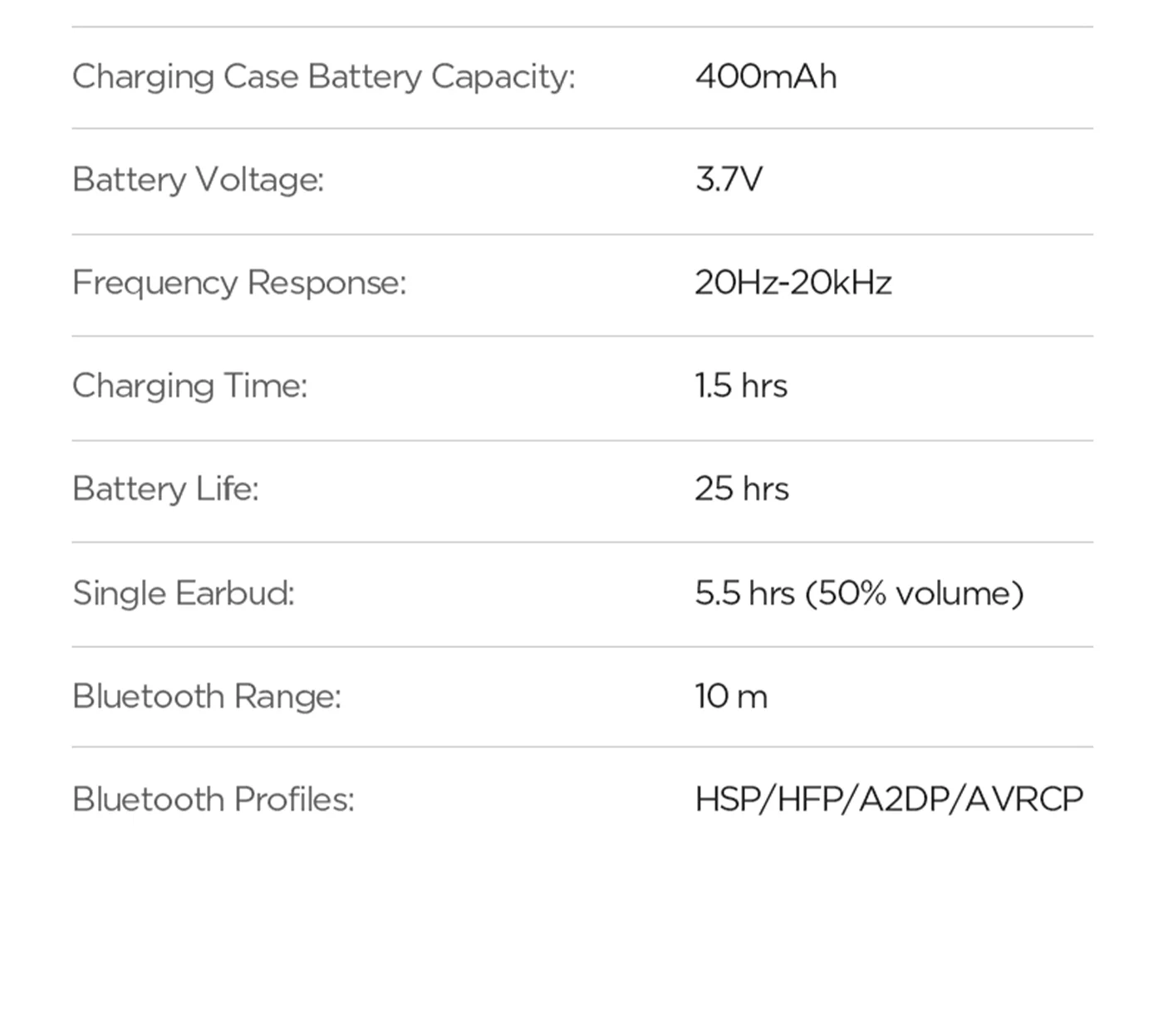 Single ear battery life