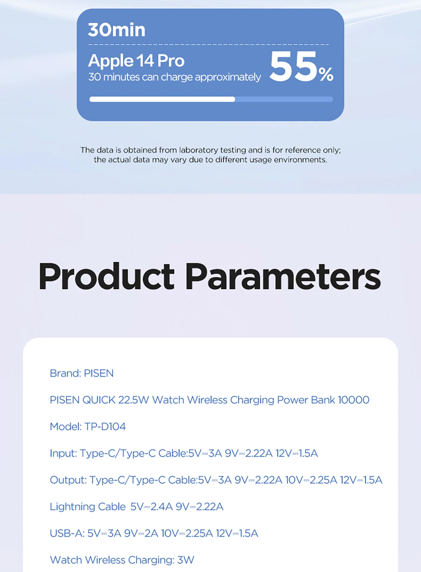 Type-C/Type-C cable: 5V-3A/ 9V-2.22A/ 12V-1.5A