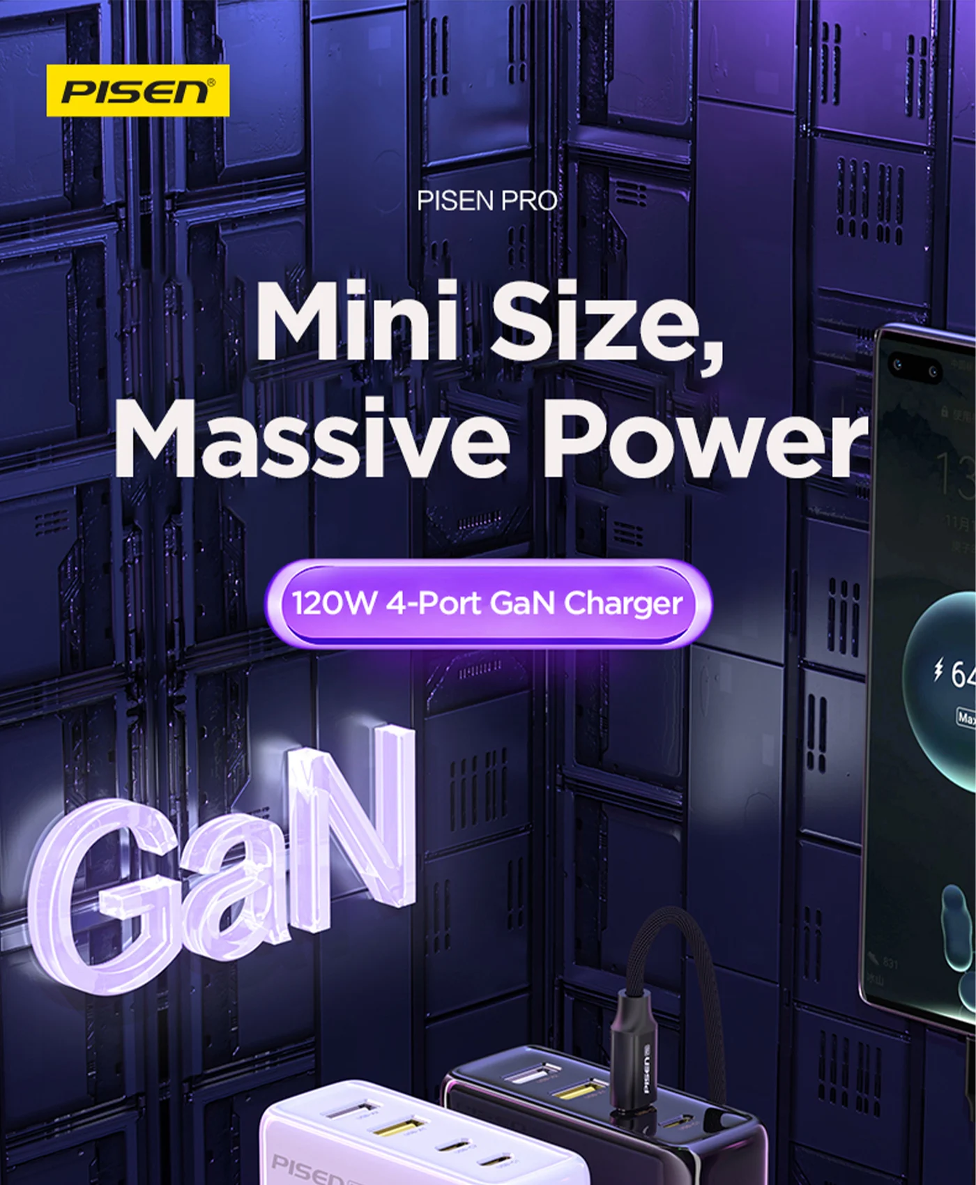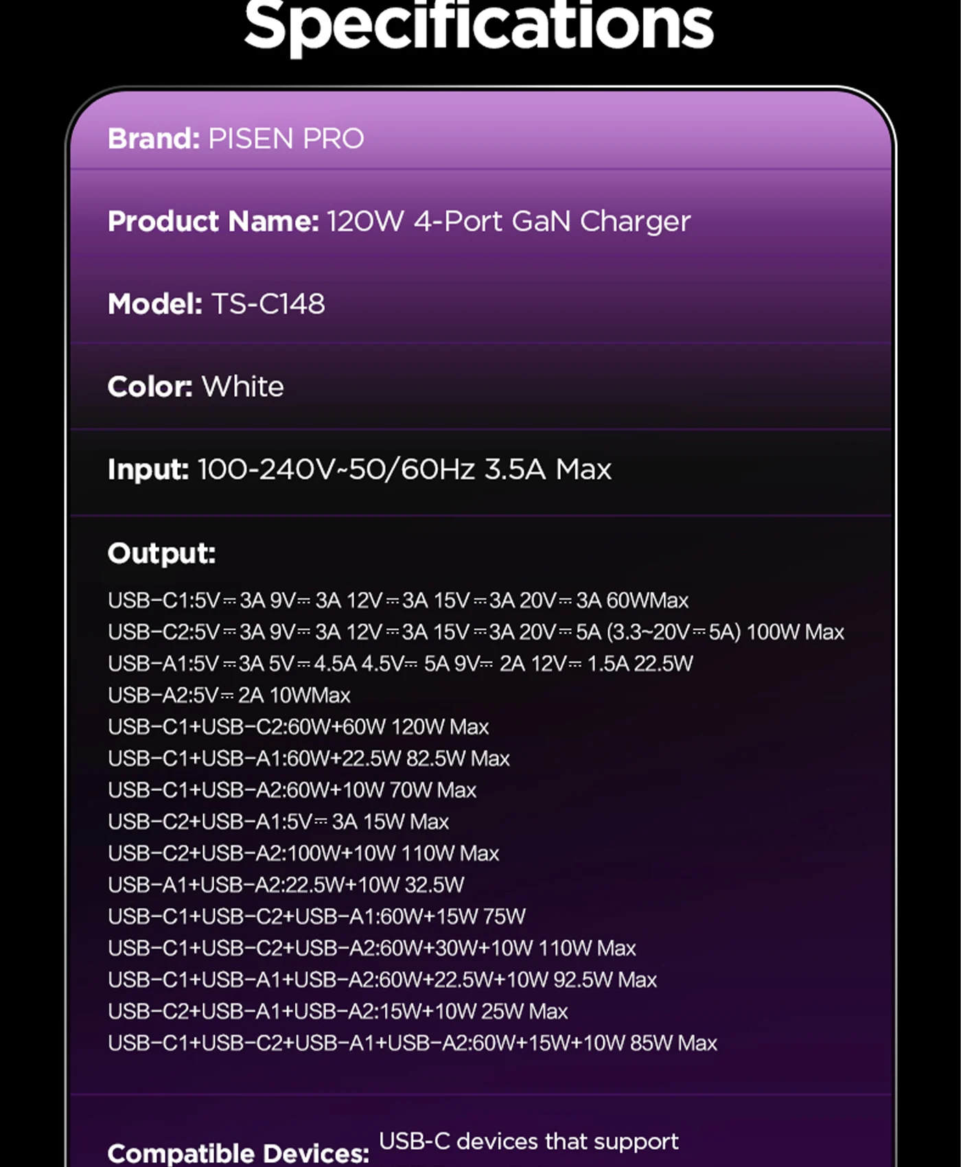 PISEN Pro 120W Fast Charger (2C+2A) (US) TS-C148