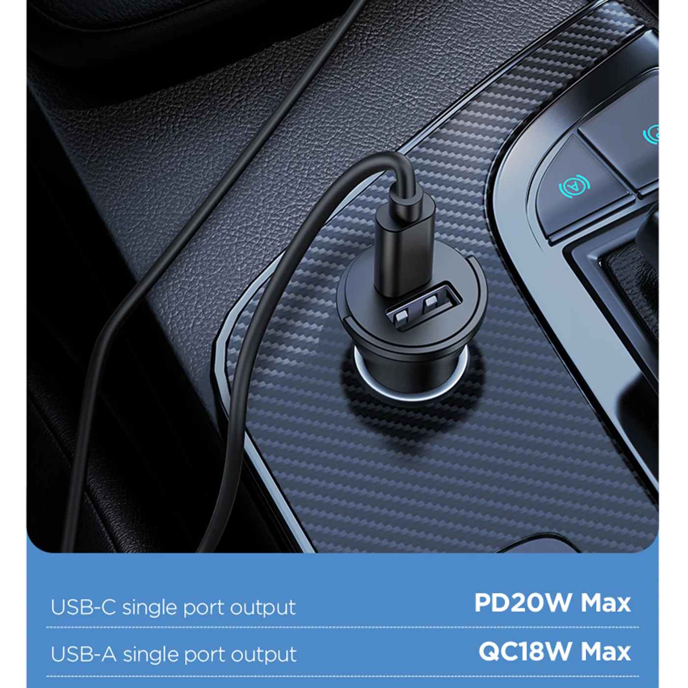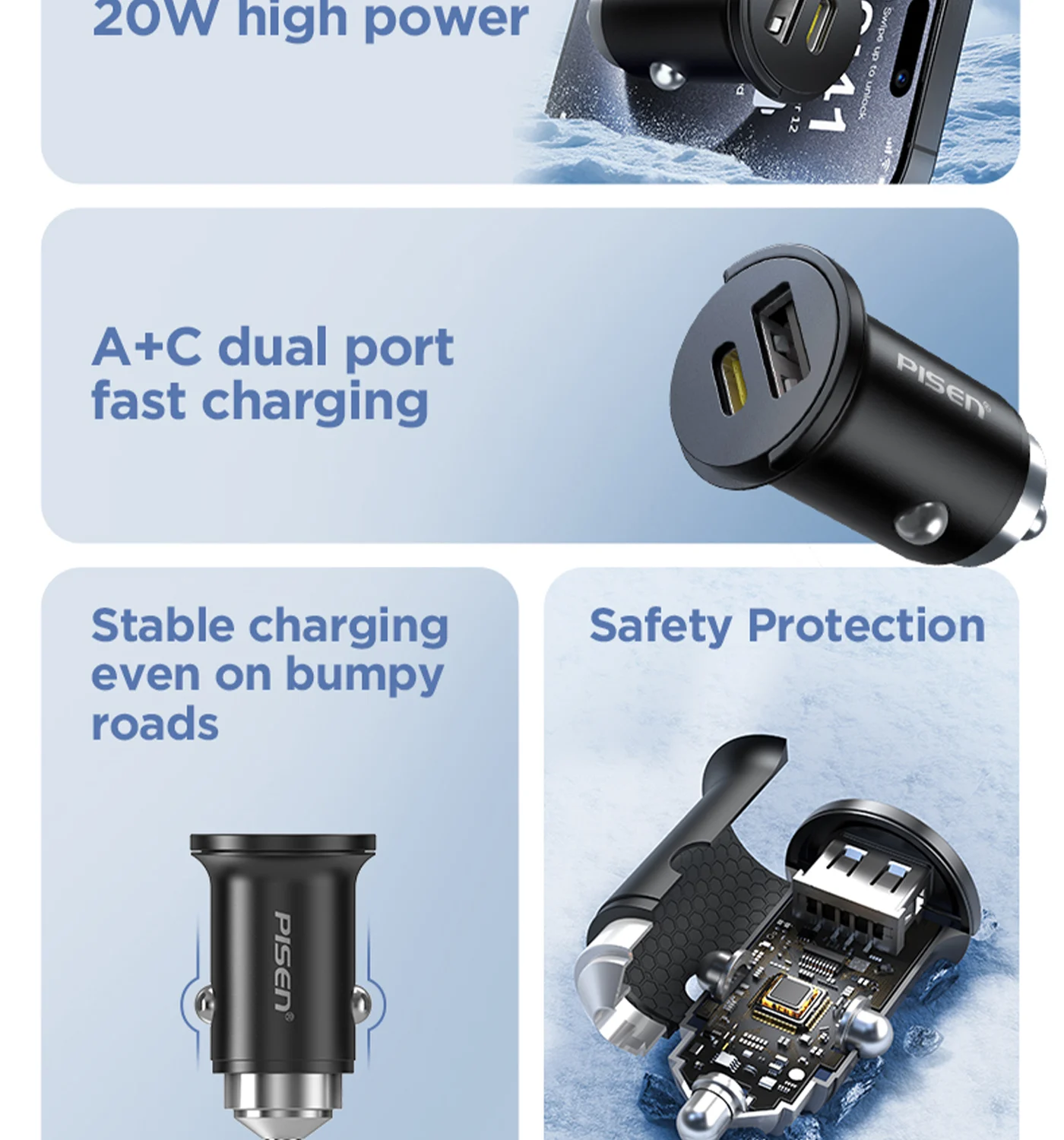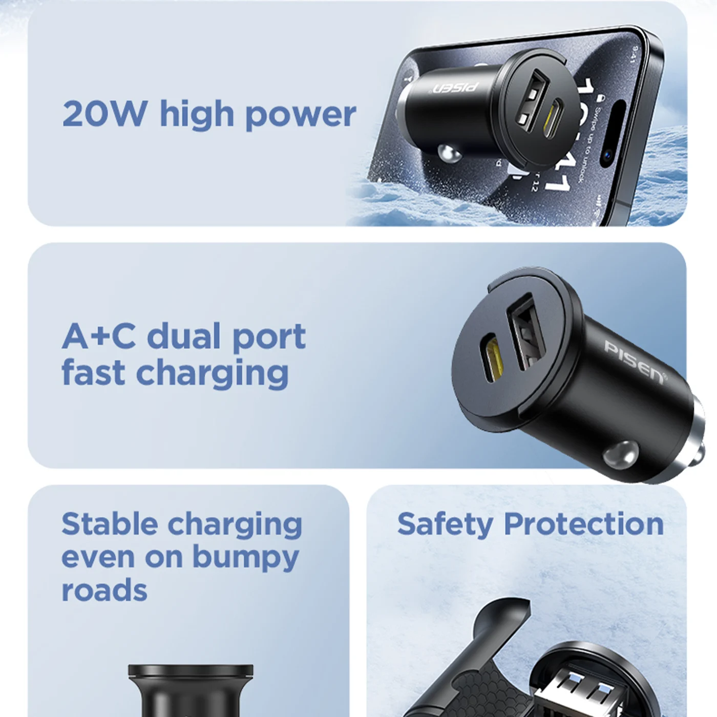 PISEN Quick USB-C+USB-A 20W Mini Car Charger TP-C77