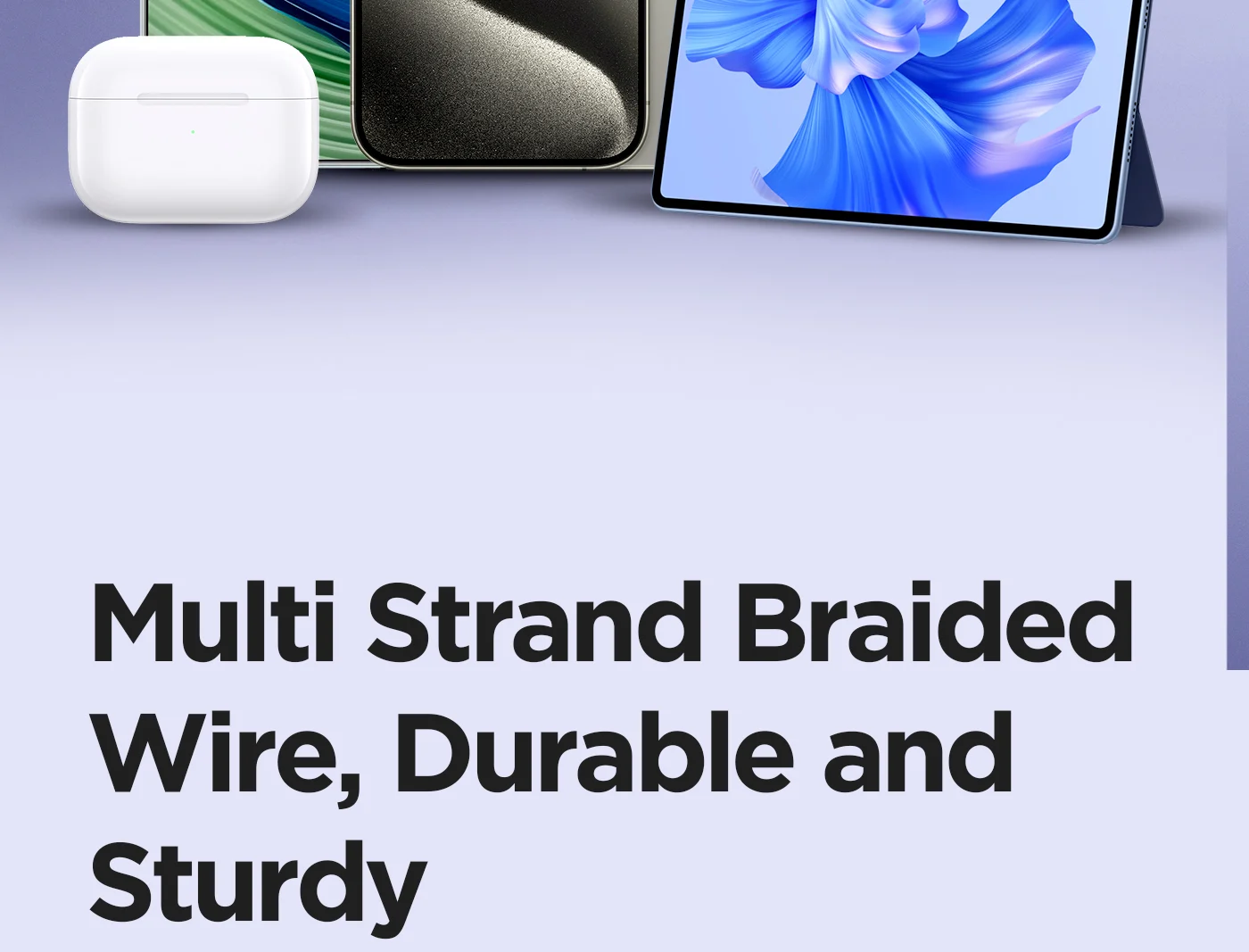 Crafted with premium nylon braiding, this cable resists fraying, tangling, and wear and tear. The reinforced connector joints pass 10,000+ bend tests, so it stays intact even with daily rough use. Its sleek, vibrant finish adds a stylish touch to your device setup.